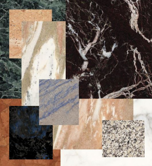 Натуральный камень как в плитке так и в слебах: гранит, мрамор, оникс, травертин, известняк, сланец, агломерат, лабрадорит.